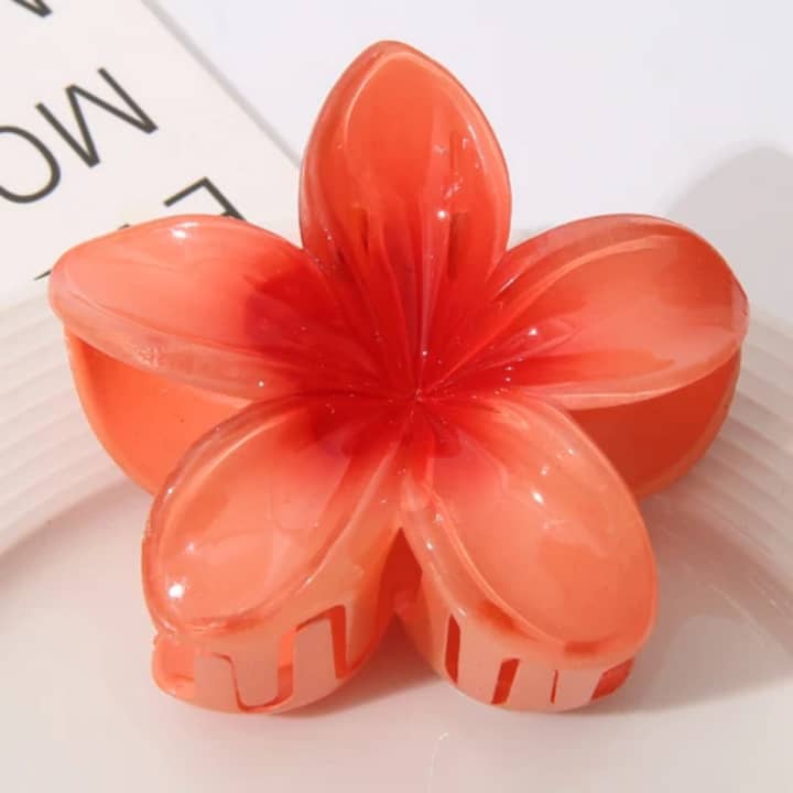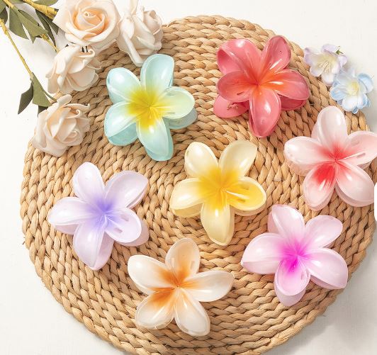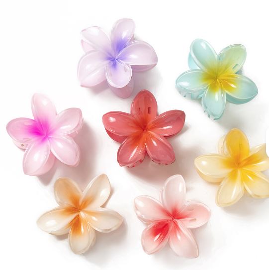 6cm Purple & Gold Plastic Plumeria Hair Claw Accessory Cross-Border Hawaiian Flower Shark Style Sweet Hair Clip